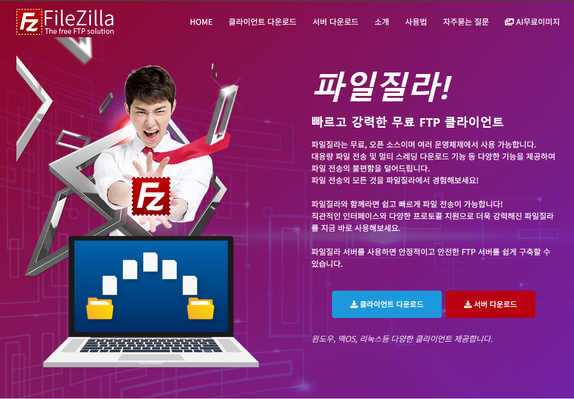 웹사이트 운영과 서버 관리에서 가장 보편적으로 사용되는 프로그램 가운데 하나가 바로 **파일질라(FileZilla)**다.